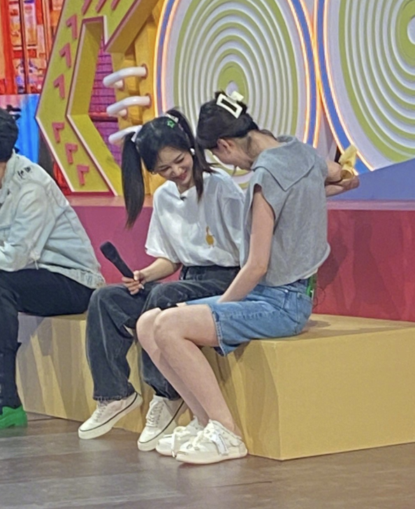 两人在录制节目的时候,都紧紧地互相挨靠在一起,像极了连体婴儿,估计很久没有见面了,有很多说不完的话吧。