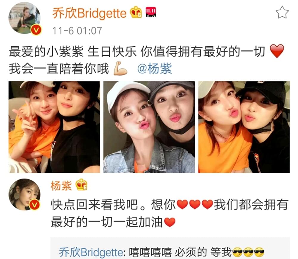 杨紫和乔欣的关系有多好?她们经常互相诉说女孩子之间的心事,即便是没有见面也会线上聊天,在对方生日的那天也一定会公开送祝福。