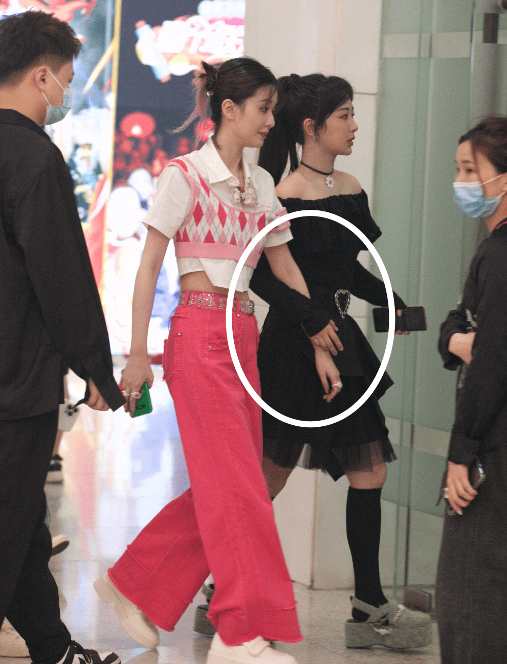 后来网上又曝光了二人的下班路透照。此刻两人都已经化了美美的妆容,而且穿得也更加正式。