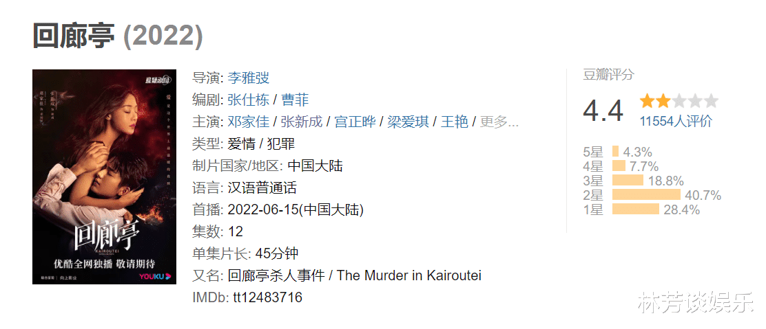 在变换凶手之后,“回廊亭”这个故事的精彩程度就断崖式下跌了,而后在豆瓣上被怒打4.4分,可惜又不意外。