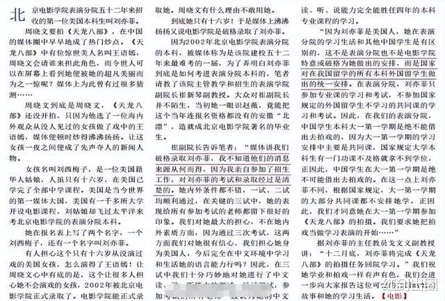 按照副院长所说,如果刘亦菲是以美国人身份被北电录取,事实上并不存在问题,但网友真正提出质疑的是,刘亦菲当时有可能并没有拿到美国国籍,这样的话,她是不符合录取政策的,需要通过文化考试才行。