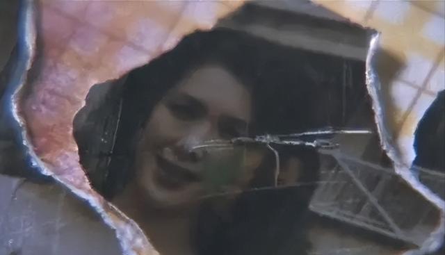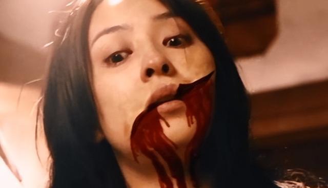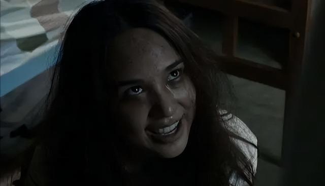《鬼来电》中,由美在回家的路上遭到了怨灵的追杀,她惊慌失措地跑进了一幢废弃的楼房,之后她来到二楼,朝一个灯光明亮的屋子走去,屋子的入口被帘子所遮住,由美缓缓地移动脚步,蹑手蹑脚地拉开门帘,不料屋内的桌子上竟然有一部满是血迹的手机,屏幕上还显示着由美的名字,由美吓得转身就跑。
