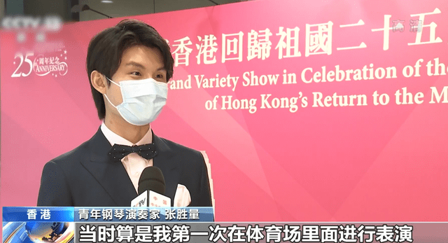 晚会制作方还邀请到一位特殊的表演嘉宾——青年钢琴家张胜量。1997年,年仅10岁的他有幸参与香港回归晚会的录制,如今过去了25年,他再次登台表演,感到十分荣幸。