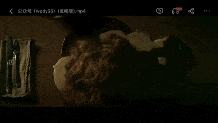 男主的妻子因为没有坐稳,直接倒在了餐桌上。