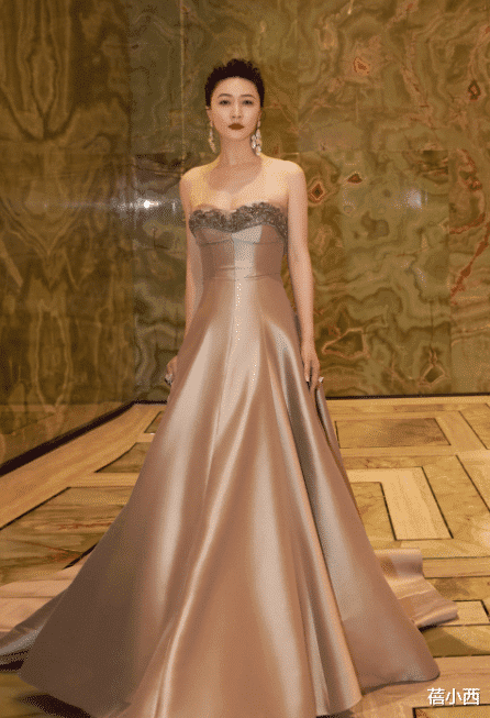 出席活动还是要穿的高级一些,那这时候我们就应该尝试一些长款连衣裙,因为长款连衣裙比普通的短款裙装更能够提升气场,田海蓉选择这种抹胸长款连衣裙也增强了她个人的魅力,显得气场全开,这种缎面材质更是拥有着高级感。