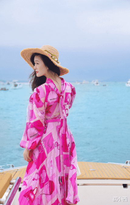 奔四奔五的女性其实在穿衣方面还可以挑战一些亮色搭配,因为亮色系比深色系更减龄一些,下面的田海蓉选择玫红色印花连衣裙,也让她的活力感被展现出来,根本不会觉得老气,这种玫红色的印花饱和度比较高,视觉上也拥有着很强的冲击感。
