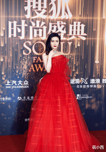 而且田海蓉选择的连衣裙特别修身,直接勾勒出她的腰臀比,然后融入了深蓝色修饰皮肤,更能够让她自身的成熟感体现出来。假如你本身肤色不是很白,可以借鉴这种深蓝色,这种色彩也比较好驾驭。
