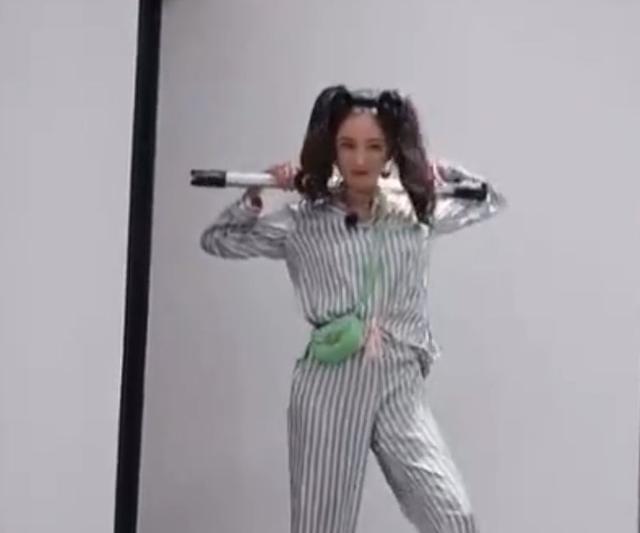 最让人关注的莫过于杨幂了,她以一身条纹睡衣亮相,身上还背了一个绿色小包。双马尾棒球棍造型,这个姿势是不是很熟悉呢?不少网友直呼,杨幂这是COS的小丑女吧!