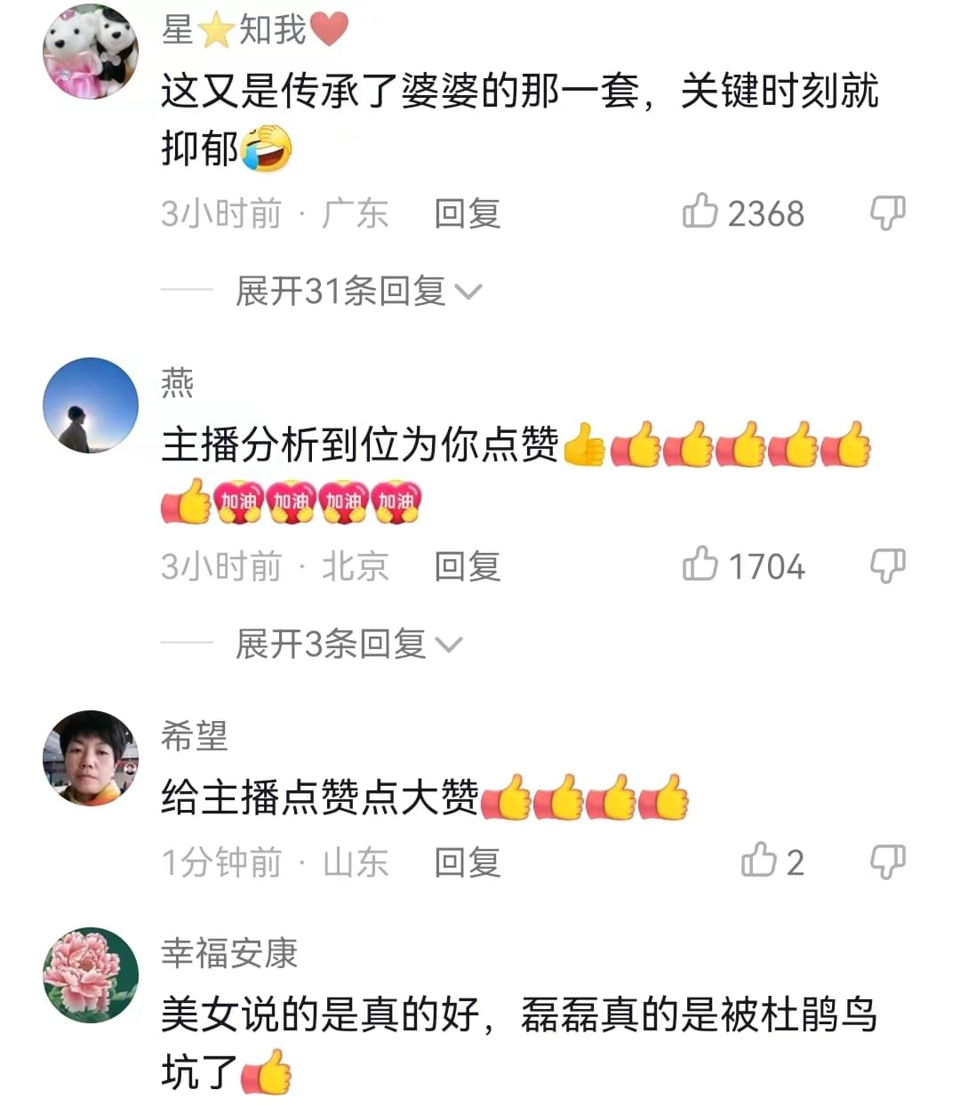像熊磊已经跟自己的亲婆婆杜新枝站到了同一个立场上,这婆媳二人确实是绝配了。一个人是遇到事情就知道生病住院,一个是说自己遭到网暴,到底抑郁没有咱也不知道!