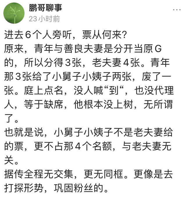 最近,倒是有杜粉称田静姐弟这去二审的现场,并不是单纯地为了去支持许妈姚爸,而是过去维护巩固自己的粉丝。