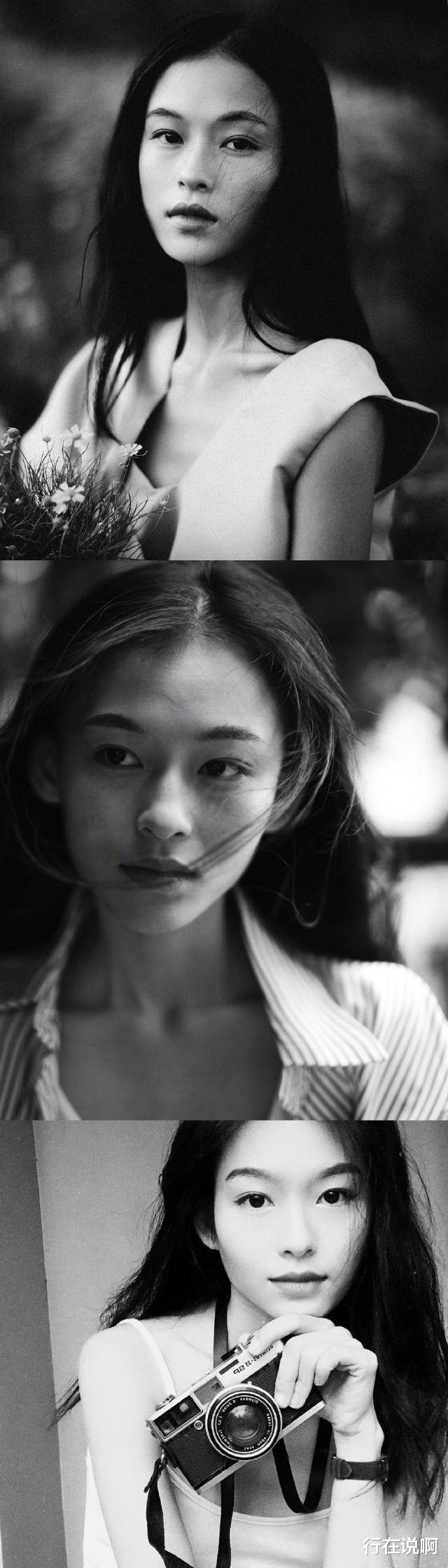 下颌线清晰明朗,眼线也加重了,胶片图片越发显示出她的清冷气质。