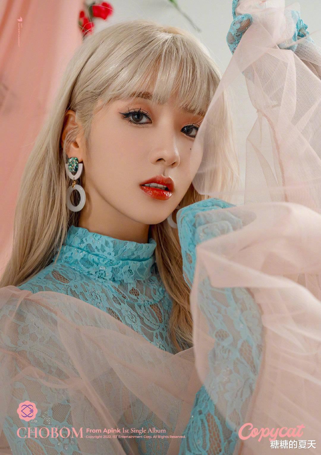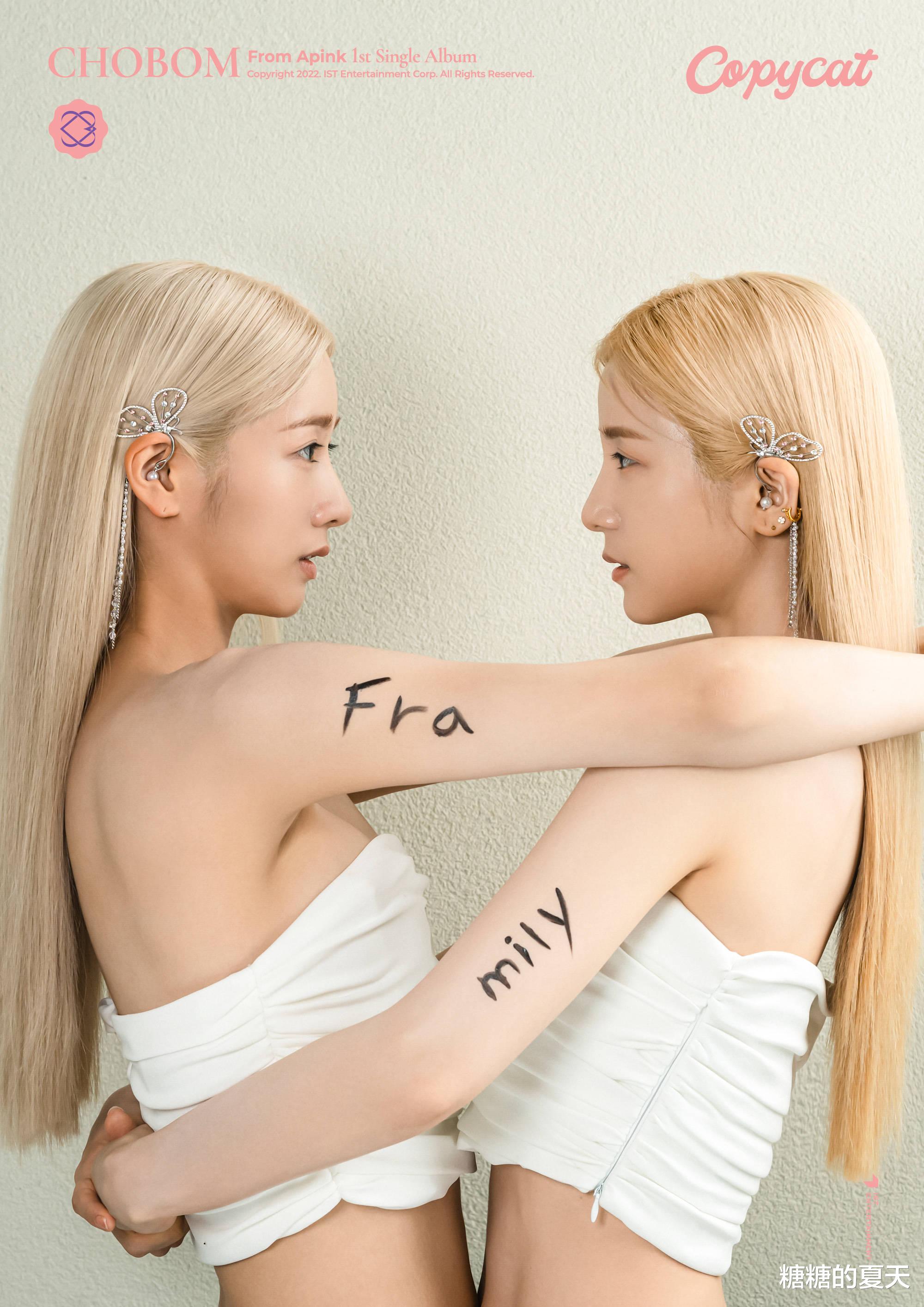 Apink小分队初春(CHOBOM,朴初珑,尹普美)已经完成了首张单曲专辑《Copycat》第一张概念照片的发布。