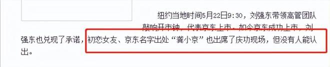 乃至2010年时,刘强东还对龚晓京念念不忘,放话要邀请龚晓京参加上市敲钟仪式。