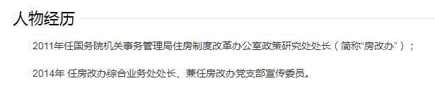 在百度百科中显示,2011年,她任国务院机关事务管理局住房制度改革办公室政策研究处处长。