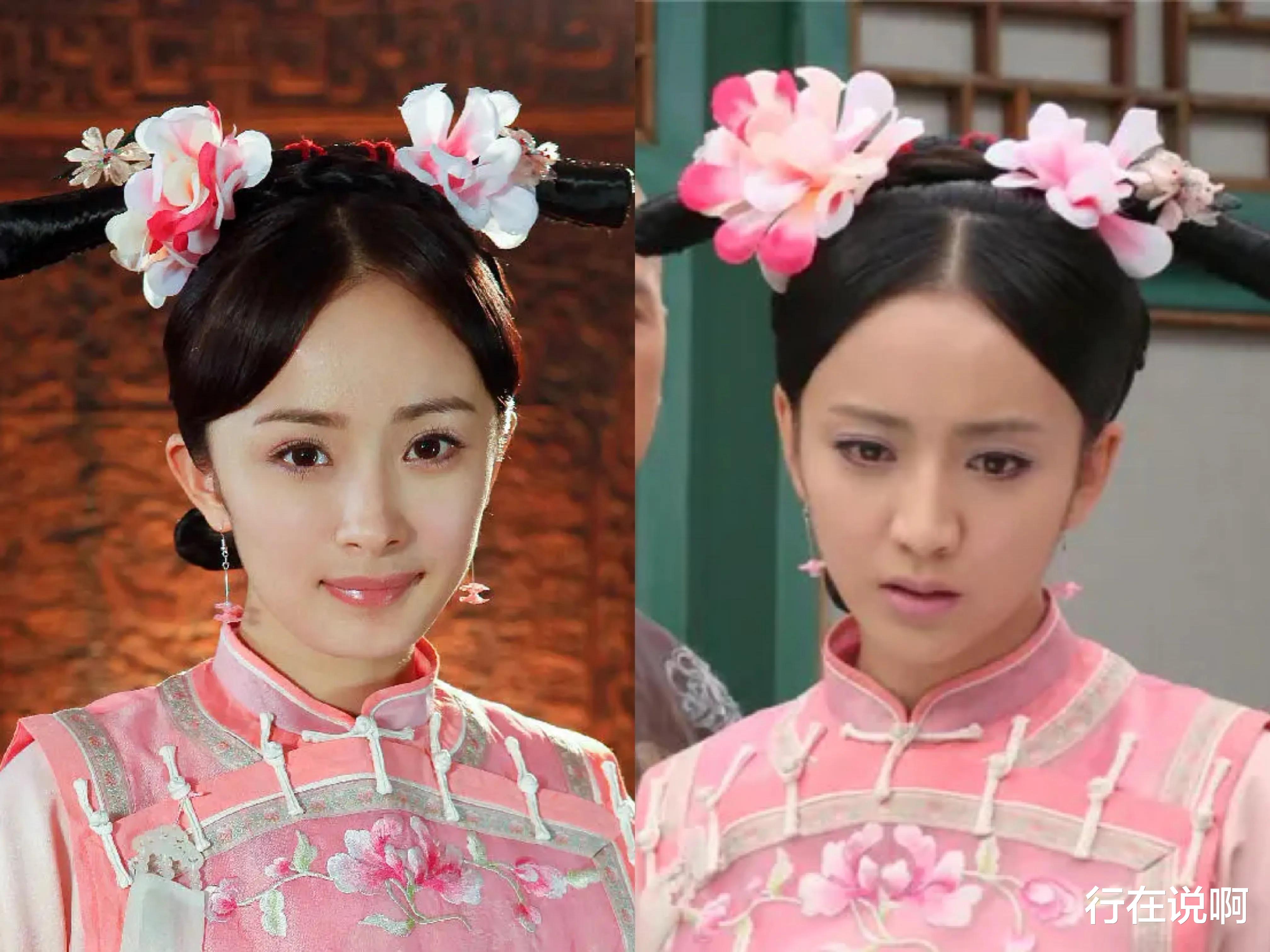 《宫锁心玉》也是单方面的碾压,同样是顶着腊肠形状的旗头、涂着挑人的粉色口红,从前艳压群芳的赵飞燕变成了干瘪土气的素言,本就颜值拉胯的袁姗姗更是无人在意,只有杨幂,娇俏灵动依旧,妥妥的大女主相。