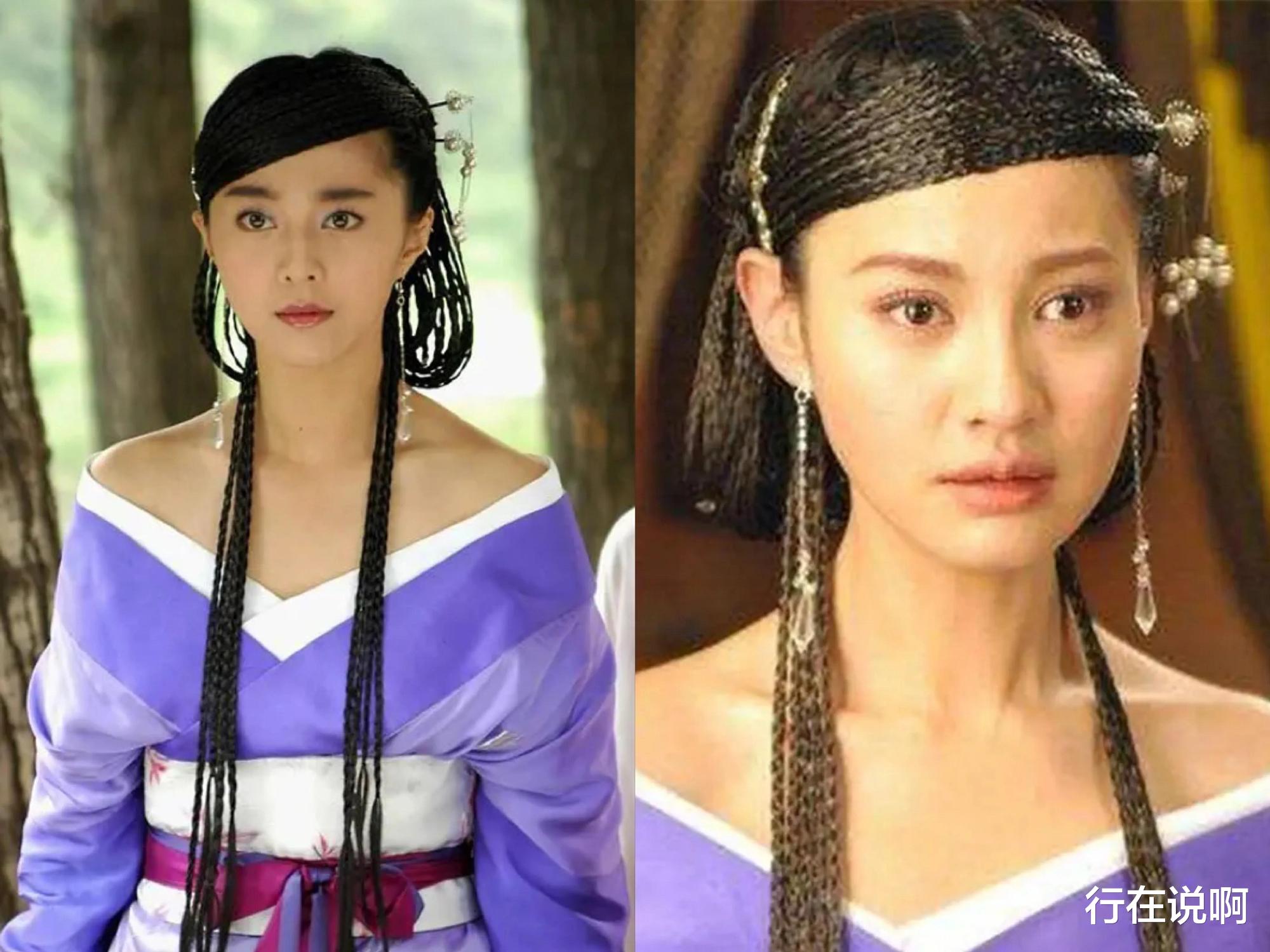 《小鱼儿与花无缺》中也有江玉燕偷偷扮成铁心兰诱惑花无缺的桥段,这身紫色露肩装应该算是范冰冰在剧中最出圈的扮相了。没想到等杨雪换上,奇怪的脑门占据了观众的视线,果然她还是更适合空气刘海。