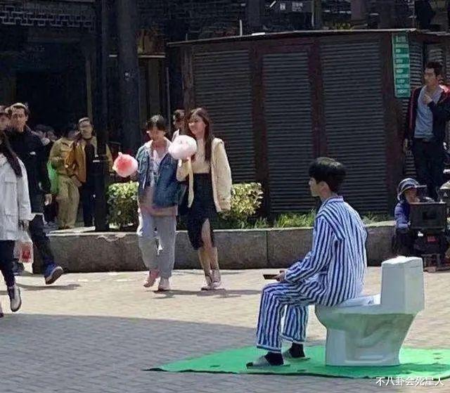 让我们再把目光移到幕后,原来王俊凯真是坐在马桶上拍的,而且还是在街上,来来往往的人盯着他,简直是大型“社死”现场,太尴尬了吧。