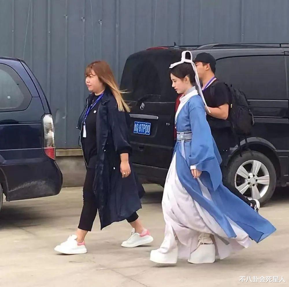 当然,如果不想踩箱子也是可以的,比如鞠婧祎,她虽然不踩箱子,可穿了恨天高,只是这么走路,脚应该很累吧。