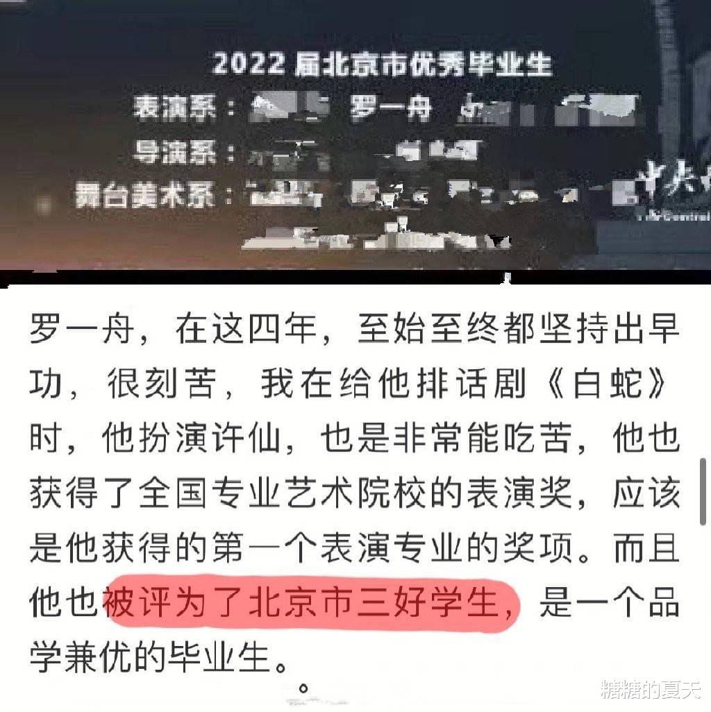 另外,大一的时候,易烊千玺在开学典礼上发布致辞,此次毕业典礼上罗一舟以优秀毕业生的身份上台致辞。从现场来看,罗一舟相比初入学的时候变化非常的大,而且看起来非常有灵气。另外,此次罗一舟在大学四年中获得过北京市优秀毕业生、北京市三好学生,此次发言言语之中流露出对母校的不舍。