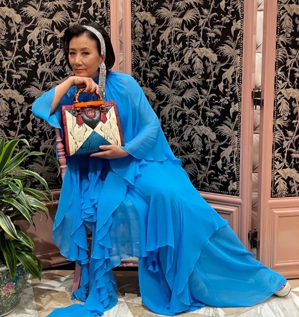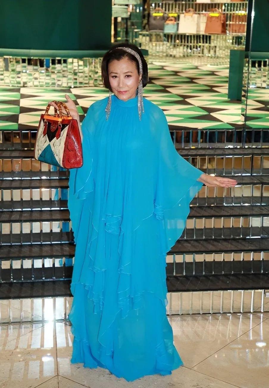 汪明荃的审美在同龄人里可以算得上是天花板级别的了,相比于在中老年女性造型中常常出现的黑白灰,这种蓝色既亮眼,却不会给人过于强烈的视觉冲击感,因此不会显得花哨,反倒有一种靓丽又不乏贵气的优雅大气。