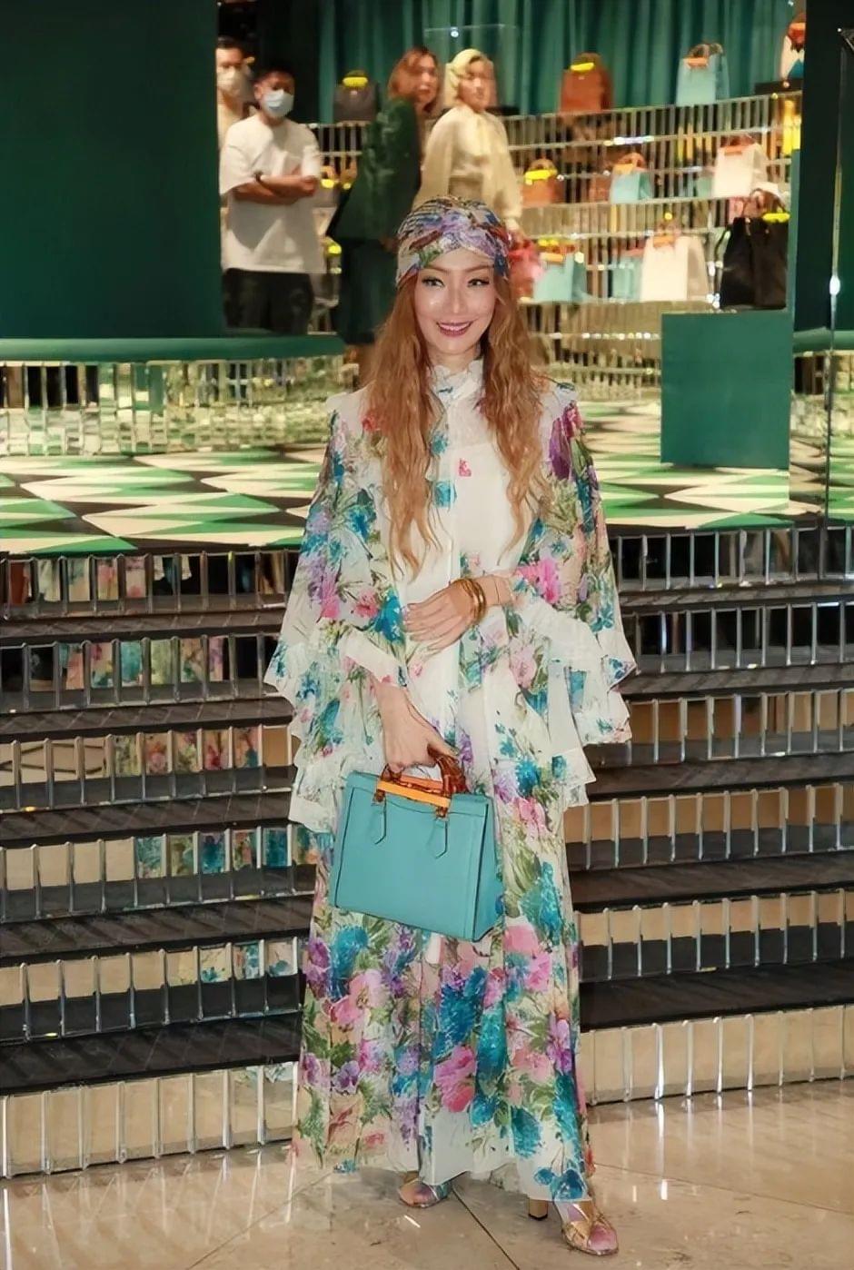 郑秀文这套印花裙look很有上世纪画报女郎的风采,印花长裙+印花丝巾这两件单品都是视觉冲击力很强的单品,风格十分鲜明突出,呈现出一种复古又文艺的华丽宫廷范儿。