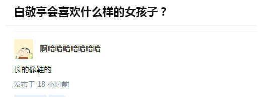 还有人专门去询问了:白敬亭会喜欢什么样的女孩子呢?有机智的网友给出了一个绝对不会错的答案:长得像鞋的。但凡有这么个人出现,恐怕真的能吸引白敬亭,但好像不太现实啊。