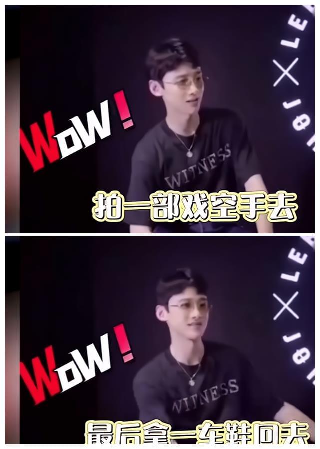 谈到开心的事情,白敬亭说:拍一部戏空手去,最后拿了一车鞋子回来。