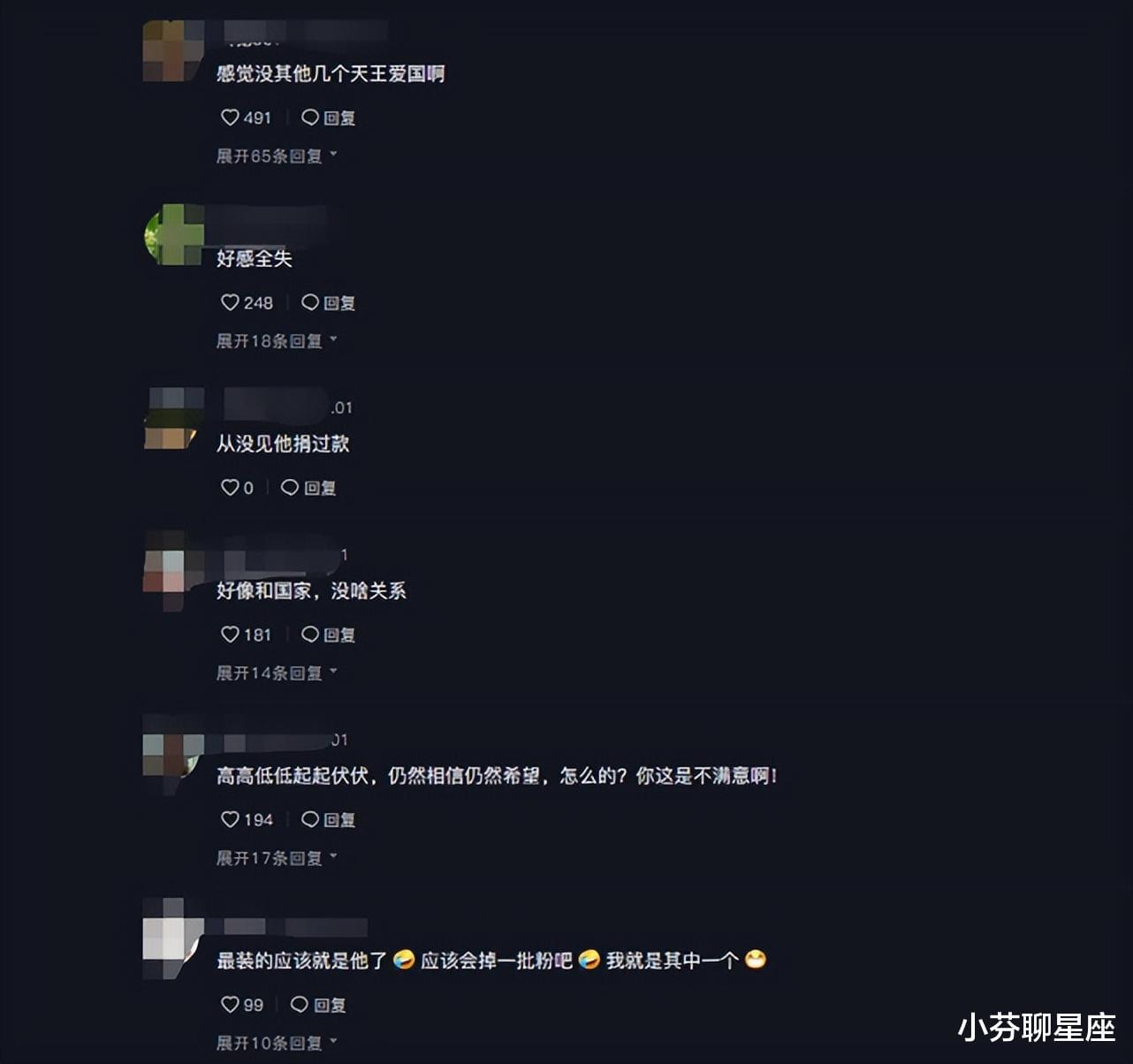 这则采访视频一经发出,评论区立马沦陷,纷纷吐槽他不够爱国——“感觉没有其他几个天王爱国啊”“好感全失”“最装的应该就是他了”,甚至还有网友在线脱粉。
