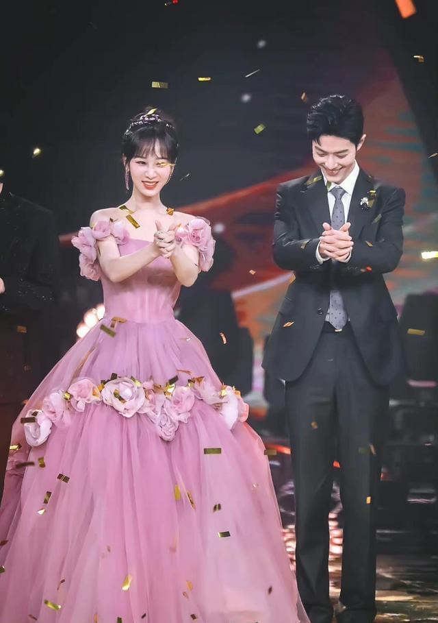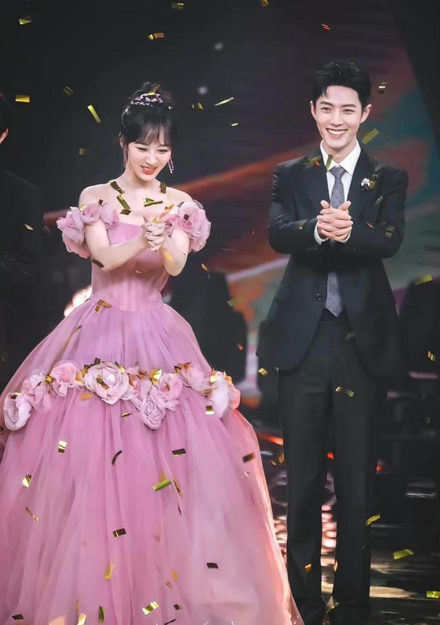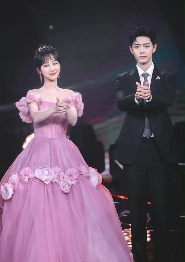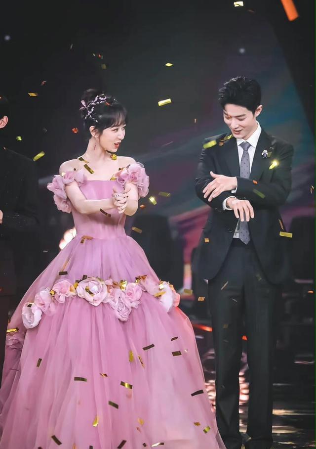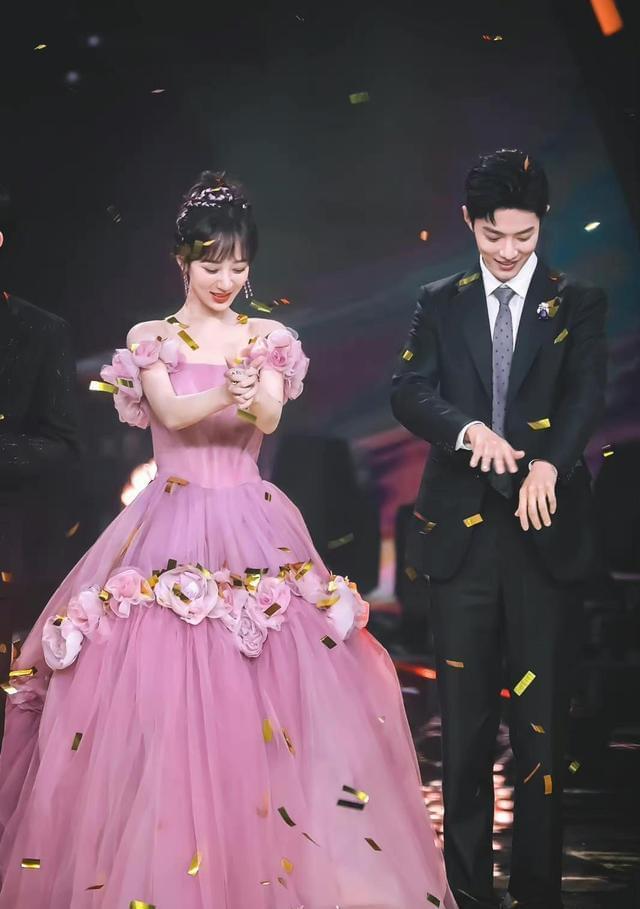 当晚的杨紫穿了一件粉色的薄纱拖地长裙,上台阶的时候非常不方便,肖战早就注意到了这一点。所以在他们登台的时候,肖战让杨紫先走,他在后面替她整理裙摆。