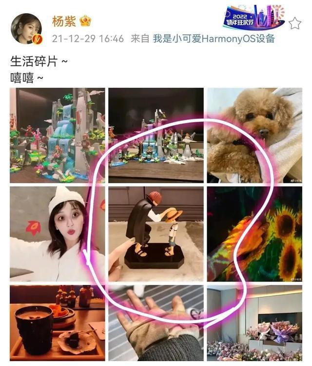 而紫妹就是那个“保留”自我魅力,让自己发光的同时,又是那个“会倾听对方声音”的人,为感情付出,让双方都舒服的小太阳!他们满足了“真正的爱”一定要包含的四个条件:关心、责任、了解和尊重,四者交融时,能够通过彼此的给予和分享,丰富双方的生命,并在这个过程中感受到自已的价值和力量。2021.12.29日紫妹微博的九宫格分享,C位的位置,从心理折射出最重要的人、事、物!而纵观全局,有妹妹自拍照的,居然也让位于C位的路飞!路飞比妹妹自己还重要?妹妹这有趣的灵魂,比较喜欢稀奇古怪的玩意儿,用他自己的话说,自己喜欢比较丑的东西。听她说过喜欢奥特曼,但是没有听过路飞。那为何路飞手办要首居C位?