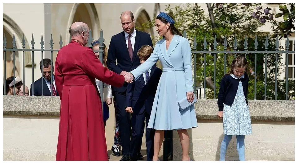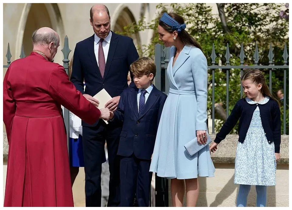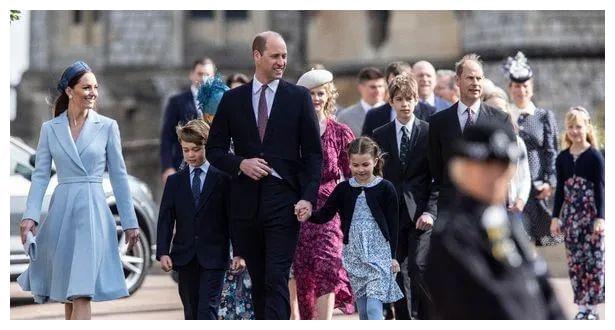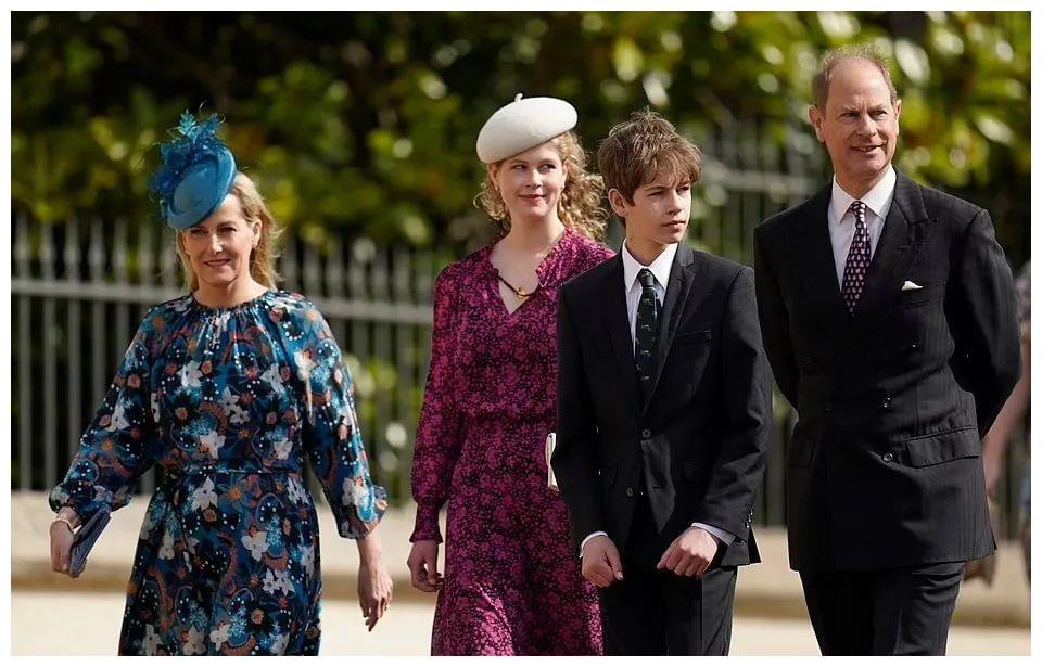 近日的复活节礼拜,女王和查尔斯夫妇没出席,威廉凯特带娃走在最前面,领衔王室亮相。紧跟身后的是威廉的叔叔——爱德华王子一家四口,长女LadyLouiseWindsor和弟弟颜值吸睛