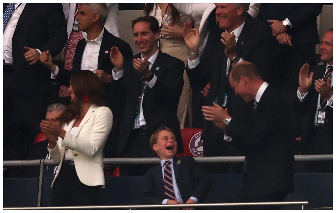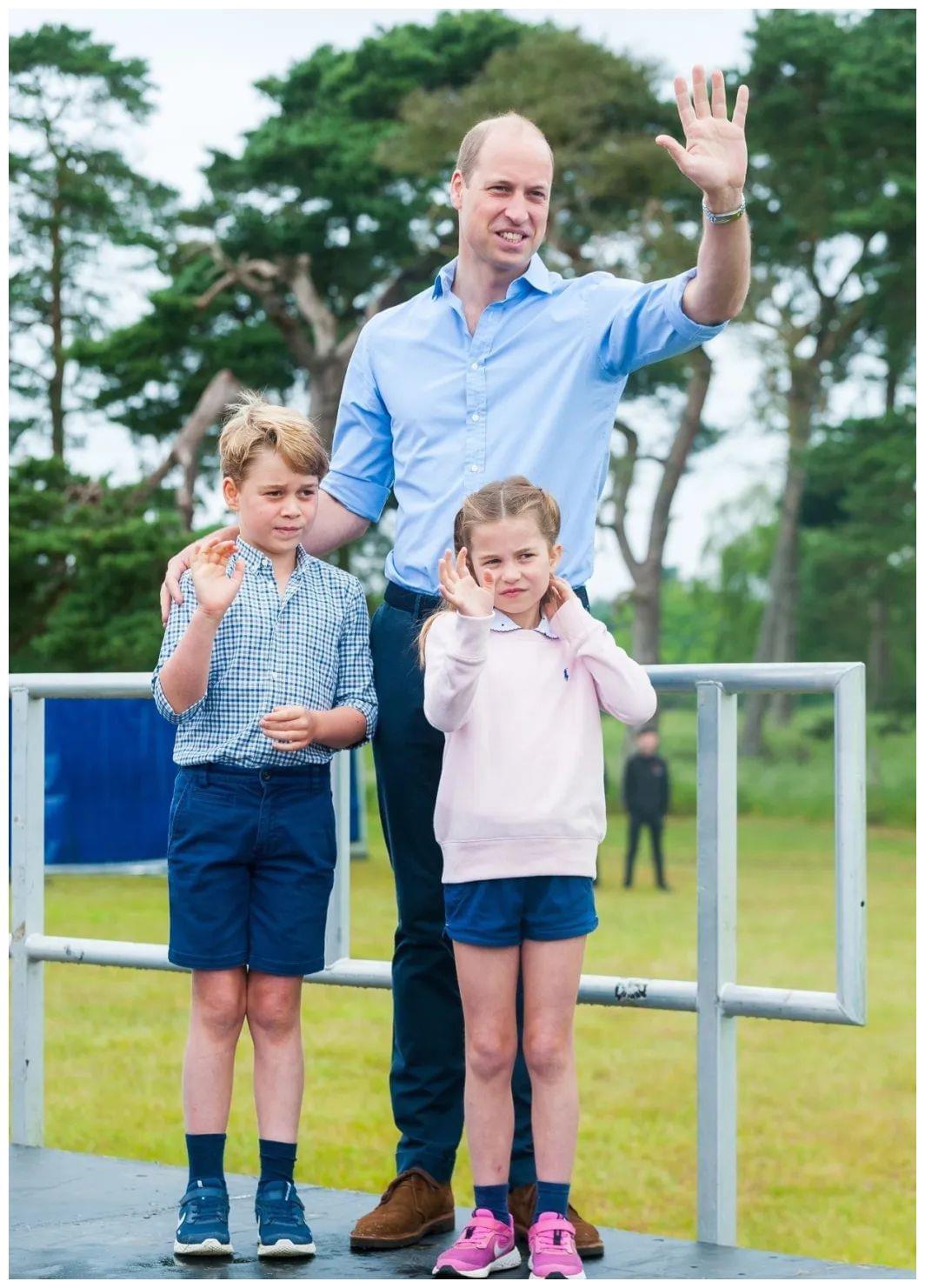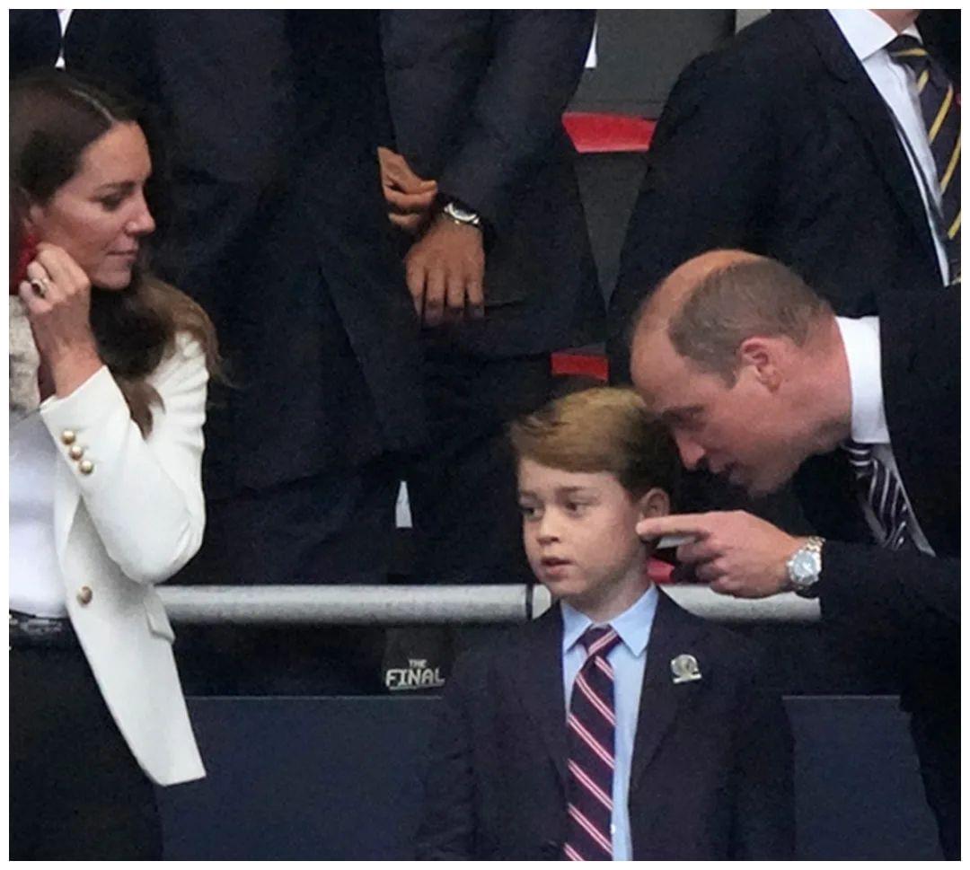 乔治刚踢完足球,夏洛特也换成运动短裤,一人举一个大号甜筒冰淇淋,上面插着巧克力脆棒,隔着屏幕都觉得好开心。观赛也属于王室公共活动之一,威廉凯特带乔治从小看比赛,他最喜欢英格兰队和伯明翰市的阿斯顿维拉队。爹妈轮番上阵教导文明观赛,他看得一脸紧张