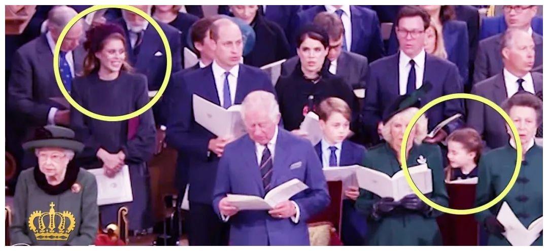 聆听纪念曾祖父的致辞,两娃站起来诵读,站姿笔直。看到碧翠丝公主伤心地流眼泪,夏洛特还安慰地看看她,碧翠丝马上被萌笑了。夏洛特外表温柔可爱,关键时刻会镇静地照顾别人感情,小小年纪很成熟。娃们全程表现无可挑剔、恪守职责,瓜友大赞“全家很优雅,曾祖父会为乔治和夏洛特而骄傲哦~”