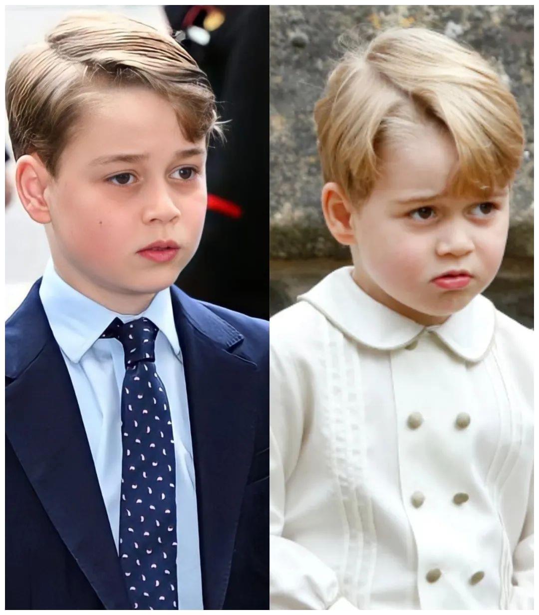 乔治的三七分发型精心打理,更加正式,路易的大盖头比较随意