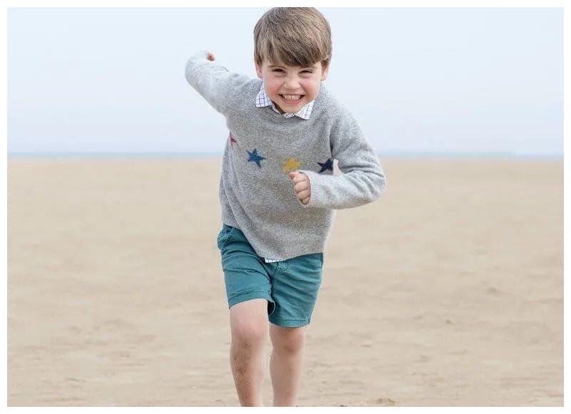 凯特拍摄最新4岁照片很自然,他在海滩上奔跑,露出牙开心大笑