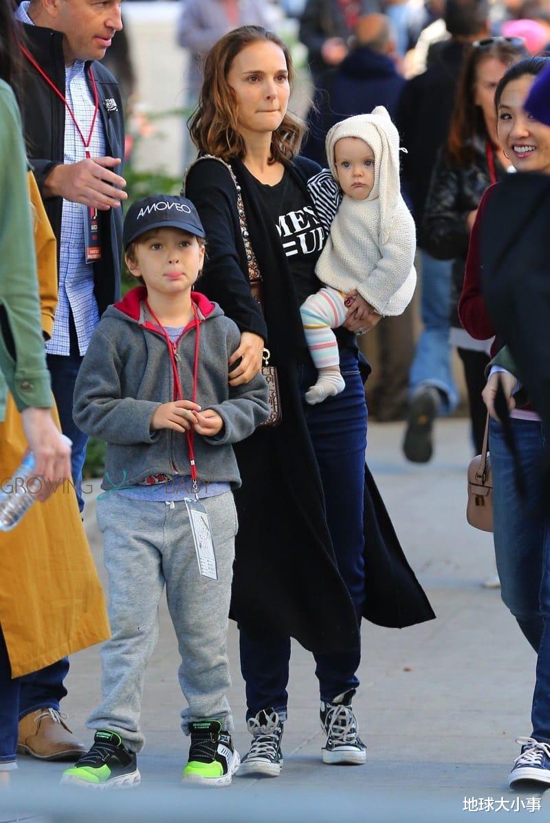 虽然贵为好莱坞巨星,但娜塔莉·波特曼时常以一手提着妈妈包、一手牵着儿子,胸前还背着妹妹的狼狈模样现身街头,只能说真的非常接地气。