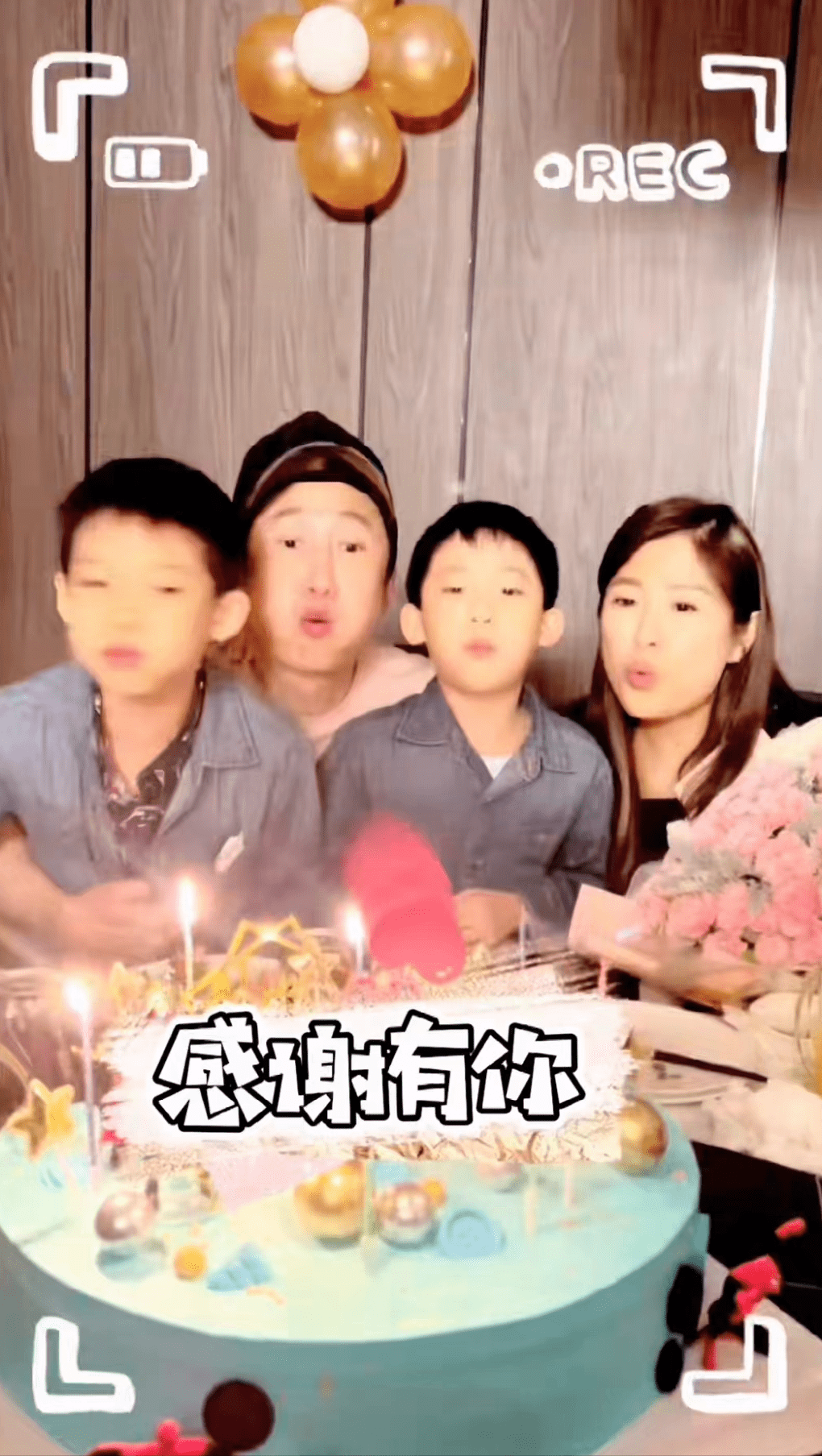 洪天明在社媒上晒出了一家几口为自己庆祝48岁生日的动态,全家罕见露面,洋溢着幸福的氛围。