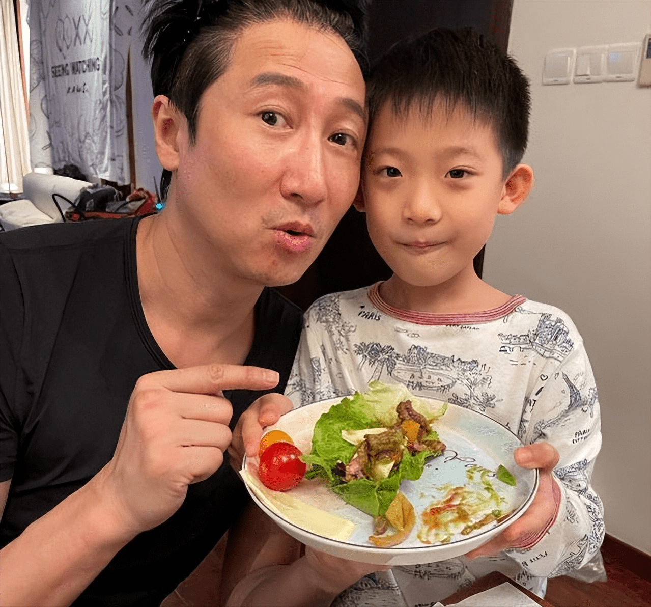 从洪天明晒出的照片来看,他的两个儿子与他实在是神似,洪家的基因相当强大。