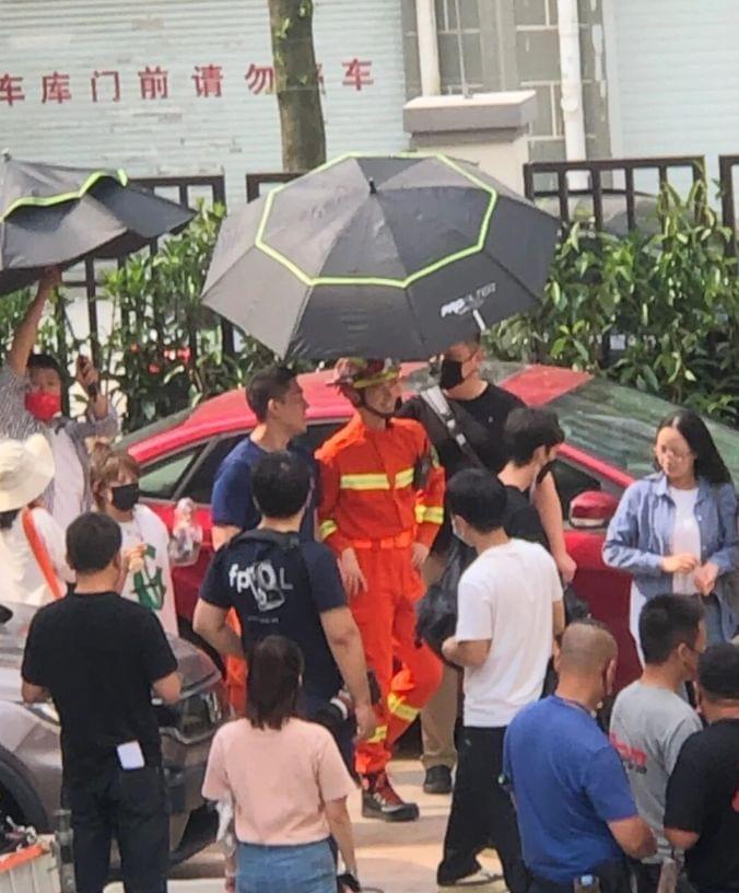 杨洋在剧组出演一名消防员,网友曾曝光过他穿消防员的路透照,180的杨洋,大长腿格外抢镜,戴着头盔也掩盖不住超高的颜值。