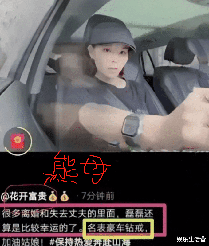 熊磊妈妈的注意力却不在女儿的情绪上,而是在她的穿着打扮上,熊妈配文,在很多离婚和失去丈夫的人里面,磊磊还是比较幸运的,名表豪车钻戒,加油姑娘保持热爱。