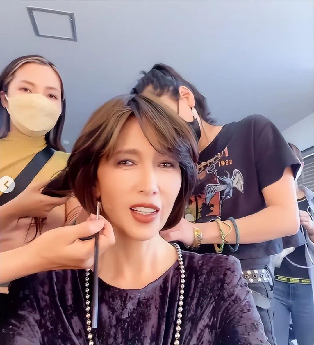 在搭配这种亮感面料的服装时,由于配色偏暗,整体露肤度又比较少,因此咱们可以在妆发和配饰选择上制造一些亮点。工藤静香就用黄色染发来提升造型的摩登气质,黄色既能提亮造型色彩,打破暗沉,同时用珍珠项链加以点缀,通过这些配饰细节来提升造型感,这样一来呈现出的时尚效果更加别致高级。