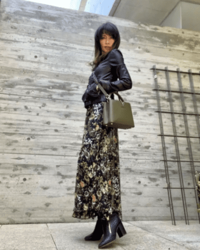 印花裙是一种很有魅力的经典单品,为了更好驾驭住印花裙的造型,姐妹们除了像工藤静香这样选择黑色作为打底色来削弱印花元素的花哨感之外,还可以巧用混搭法。选择黑色皮衣这种纯色设计的单品来平衡造型视觉效果,将皮衣的酷飒和印花裙的精致融合在一起,呈现出又酷又美的多元风采。