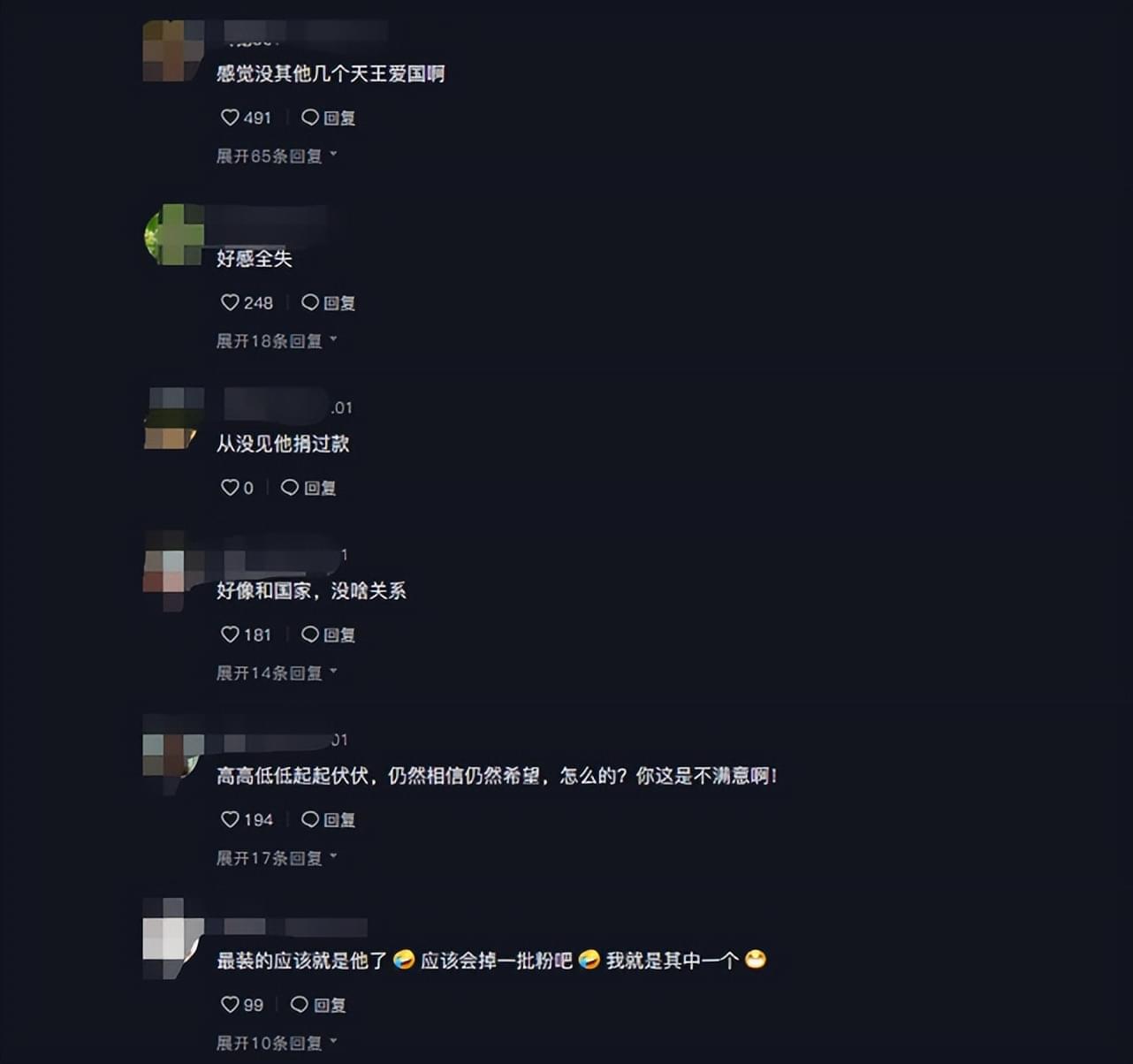 这则采访视频一经发出,评论区立马沦陷,纷纷吐槽他不够爱国——“感觉没有其他几个天王爱国啊”“好感全失”“最装的应该就是他了”,甚至还有网友在线脱粉。