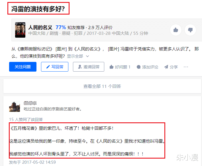 在知乎上有个点赞颇高的问题:演员冯雷的演技有多好?