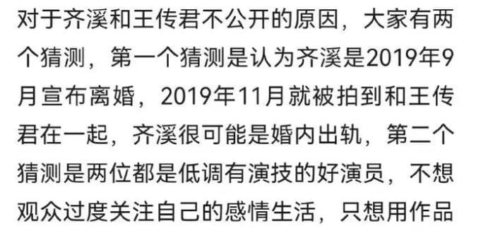 还有网友把时间线整理了下,19年年初两人就被拍了,但是9月齐溪才官宣离婚。王传君也是18年8月才跟李沫颔分手的。
