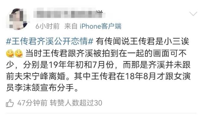 不过也有网友表示,王传君是小三,插足了齐溪和前夫的婚姻。