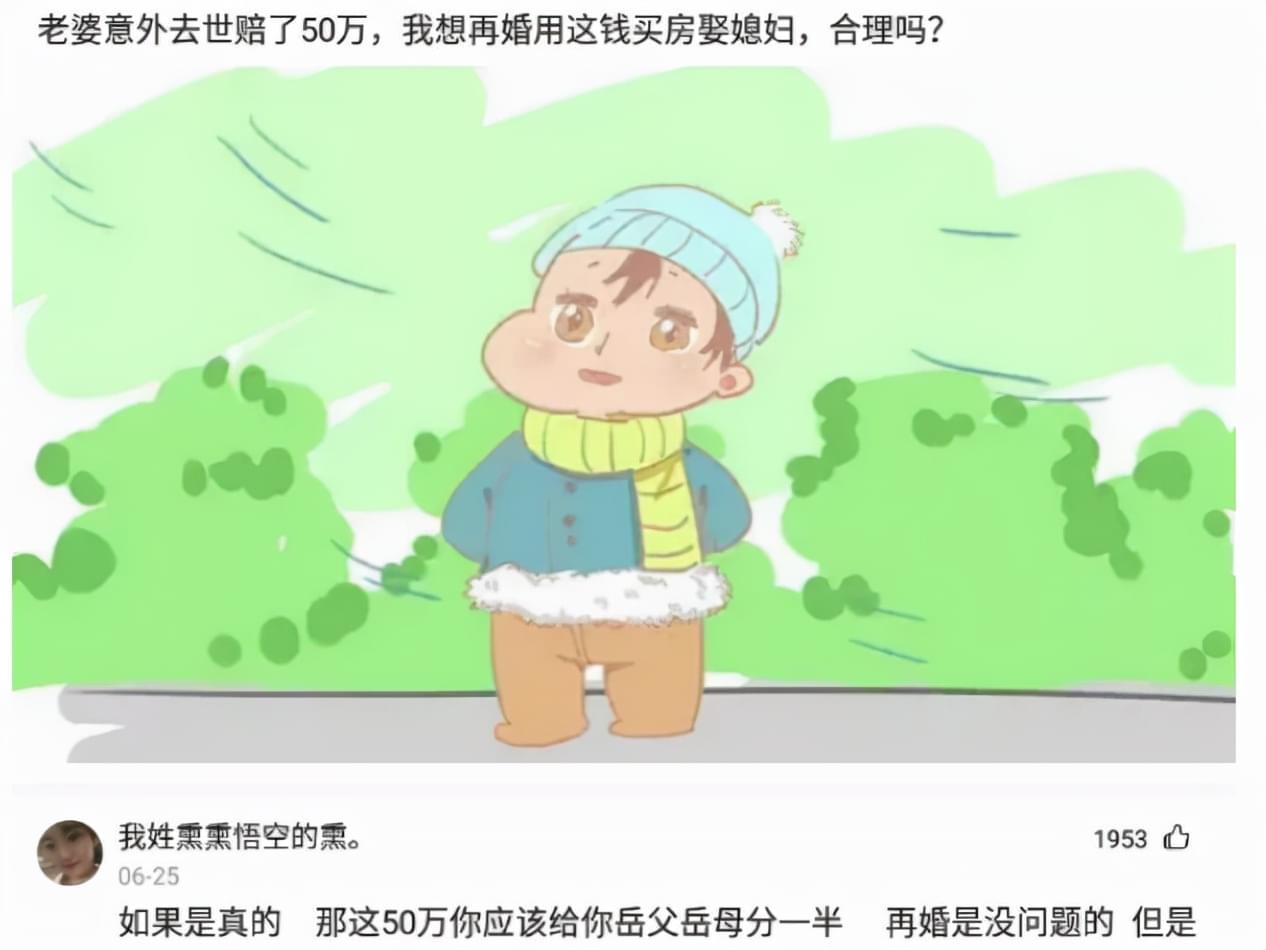 11.老婆意外去世赔了50万,我想再婚用这钱买房娶媳妇,合理吗?