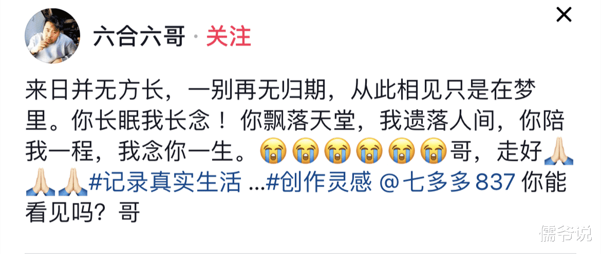 另外还有一位经常与其聚会的好友也发文悼念:来日并无方长,一别再无归期,从此相见只是在梦里,你长眠我长念,你飘落天堂,我遗落人间,你陪我一程,我念你一生……。这些悲伤的话语,真的让人感同身受。