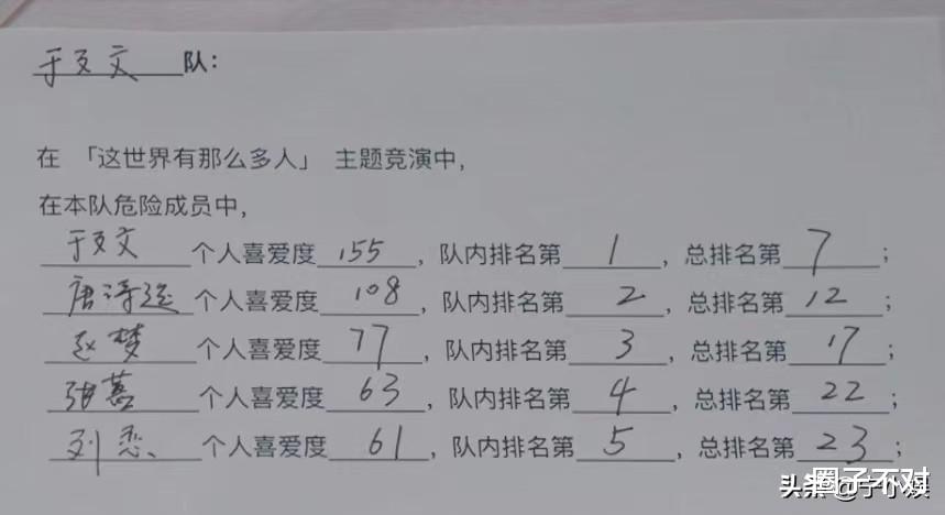 而且这次她的观众喜爱度排名在倒数第一,令人十分意外。