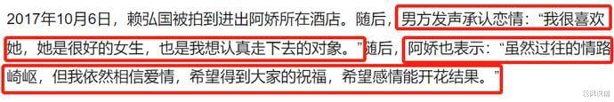 事业不顺利的阿娇把希望寄托在感情上,2017年10月。 阿娇与赖宏国官宣恋情。